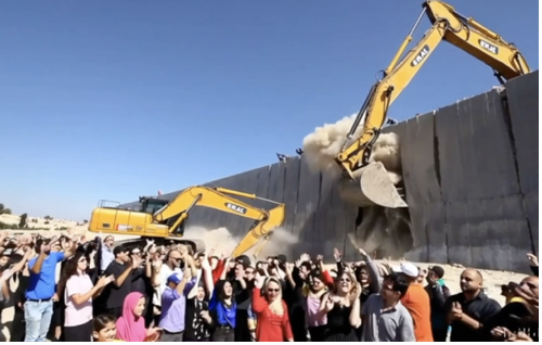 Palestinians and Israelis cheer the destruction of the Wall